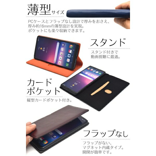 対応機種 V30+ L-01KJOJO L-02Kisai V30+ LGV35カラー オレンジ/ネイビー/グリーンブラウン/レッド/ブラック素材 外側:シープスキン(羊革)内側:マイクロファイバー内部ケース:PCサイズ(約) 縦156×横82×厚み16mm重さ(約) 87g中国製※スマートフォンは付属しません。