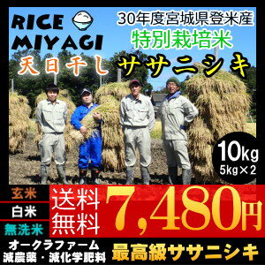30年度 天日干し【送料無料】宮城県登米産ササニシキ【10kg(5kg×2)】宮城県認証【特別栽培米】(減農薬・減化学肥料)[玄米/白米/無洗米]選択可能【あす楽対応_東北-関西】