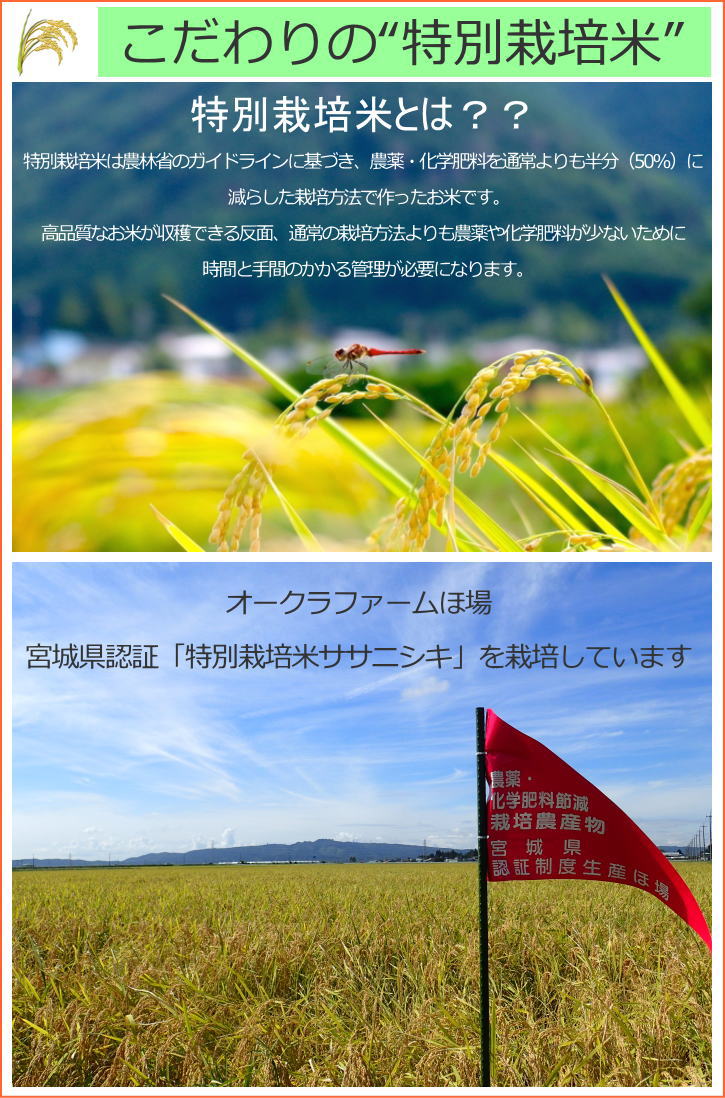あす楽対応!東北・関東・甲信越・北陸・東海・関西 名称 : 玄米/精米 産地 : 宮城県登米市 生産者 : オークラファーム 品種 : 特別栽培米ササニシキ[天日干し](単一原料米) 産年 : 平成30年産米 重量 : 10kg(5kg×2袋) 精米年月日 : 別途商品袋に記載(精米のみ) 梱包 : ダンボール箱 北海道・本州・四国・九州へは送料無料。