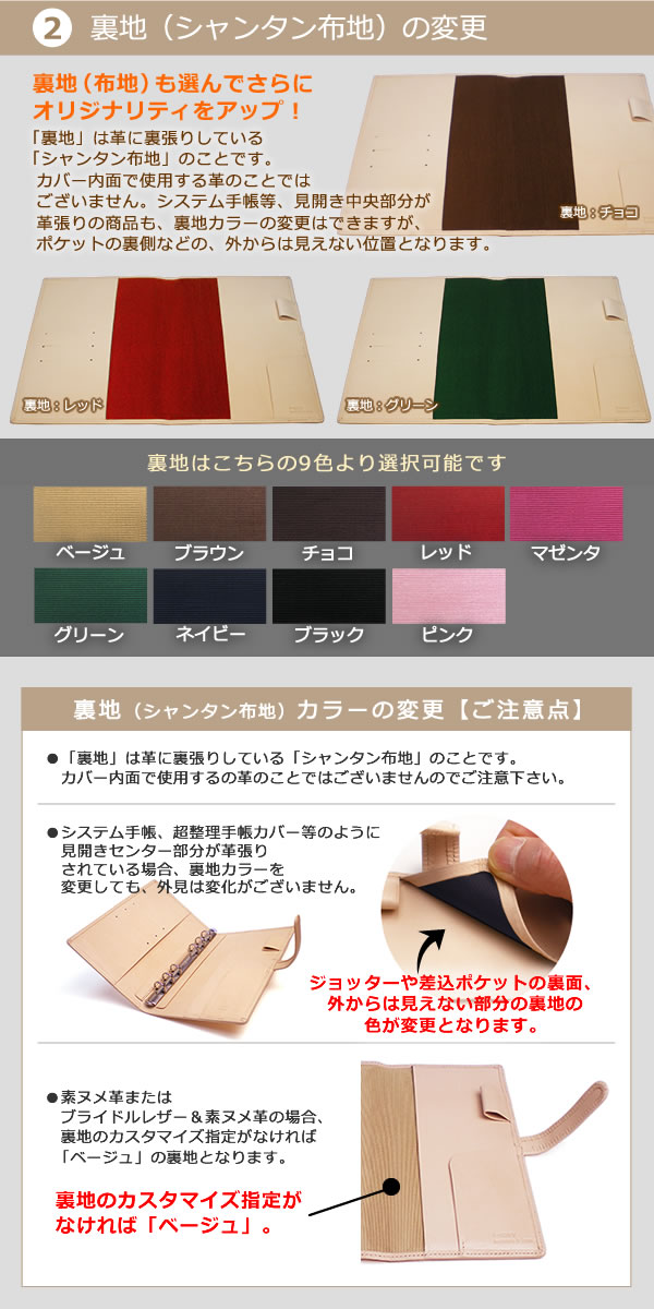 ご注意点 ●こちらのページは素ヌメ革/ブライドルレザー&素ヌメ革専用の 「カバー類のカラー変更カスタマイズ」ご注文ページです。